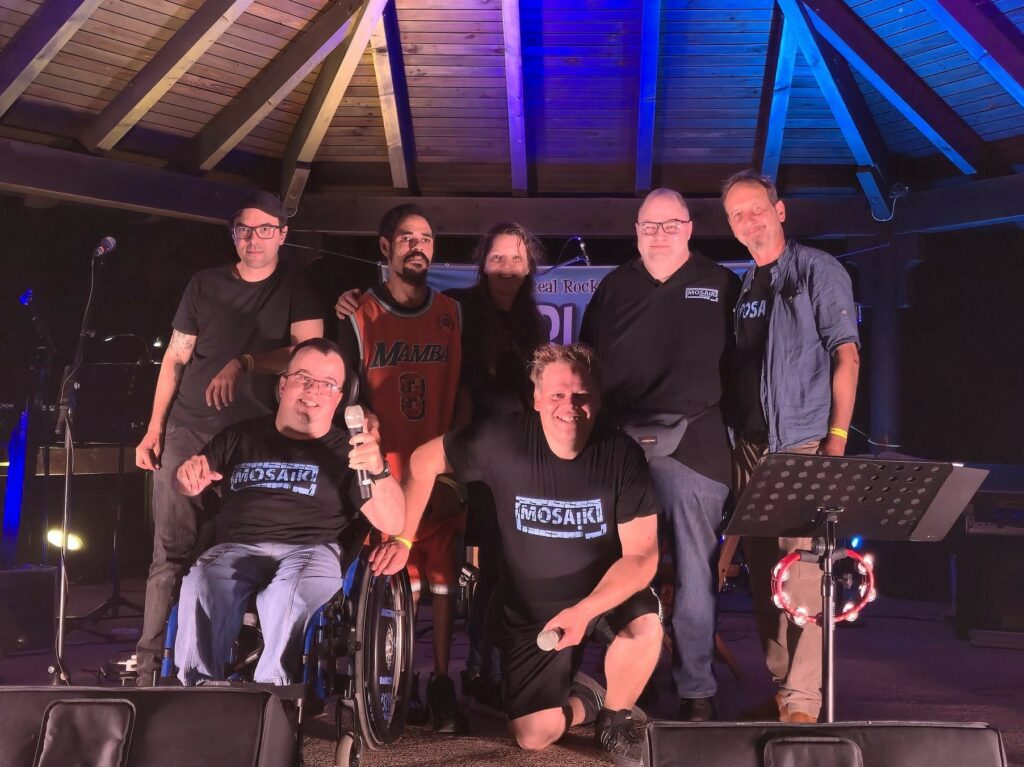 „Jeden Tag feiern wir, so wie wir sind, jetzt und hier …“ Seit mehr als 12 Jahren steht die Inklusionsband MOSAIK der Mainfränkischen Werkstätten Würzburg auf der Bühne und lädt zum Tanzen, Singen und Feiern ein. Mosaik ist ein leuchtendes Beispiel für gelebte Inklusion und musikalische Teilhabe. Musikalische Teilhabe bedeutet Selbstvertrauen, gegenseitiges Verständnis und gesellschaftlicher Zusammenhalt. Und genau das feiert die Band mit jedem Auftritt auf, hinter und vor der Bühne.
