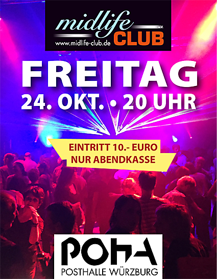 Super Sound, tolles Licht, genialer Tanzboden und viel Platz zum tanzen – der Midlife-Club ist am Freitag, den 24. Oktober wieder in der Posthalle, und schlimm genug, möglicherweise zum letzten Mal.